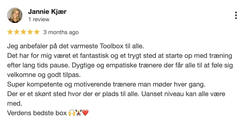 Hos Toolbox tilbyder vi en bred vifte af holdtræning, der passer til alle niveauer. Vores dygtige instruktører sørger for motiverende og effektive træningsoplevelser, uanset om du foretrækker yoga, spinning, styrketræning eller noget helt fjerde. Samtidig vægter vi fællesskabet højt, og vores træningscenter er et sted, hvor du kan møde nye venner og træne sammen med andre, der deler dine mål og interesser.